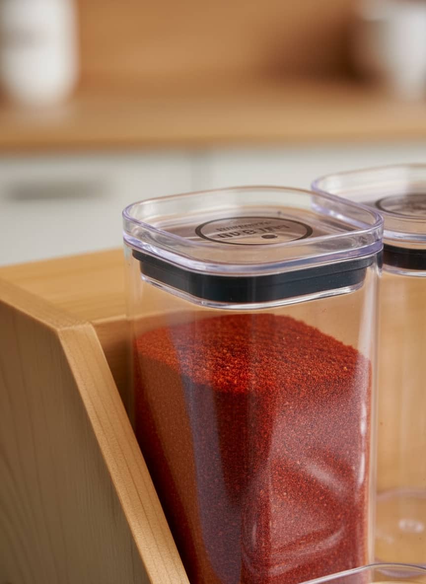 Declutter counters with this 3-tier natural beech wood spice rack complete with twelve clear storage jars and airtight lids. The stepped design keeps labels visible and within reach while maximizing vertical space in compact Egyptian kitchens. Sturdy wooden frame sits stable on countertops or inside cabinets, and crystal-clear jars make refill levels obvious for efficient grocery planning. Wide mouths simplify scooping and cleaning, while tight-sealing lids protect aroma and freshness for everyday staples like cumin, coriander, paprika, cinnamon, and mixed herbs. Dimensions: 27×25×26 cm; tier heights approx. 7.5 cm and 6 cm.